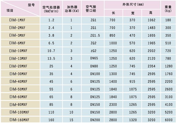 ◆ 微热再生吸附式压缩空气干燥机参数:
