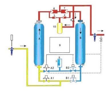 ◆ 微热再生吸附式压缩空气干燥机工作原理: